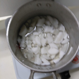 1. Em cima do disco colocar a panela e dentro dela a estearina, a matéria da qual as velas são feitas.